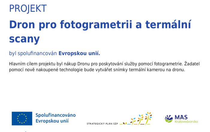 Náš projekt „Dron pro fotogrametrii a termální scany“ byl spolufinancován Evropskou unií. Hlavním cílem projektu bylo pořízení specializovaného dronu určeného pro poskytování služeb v oblasti fotogrametrie a termálního snímkování. Díky této investici jsme rozšířili technologické [...]
